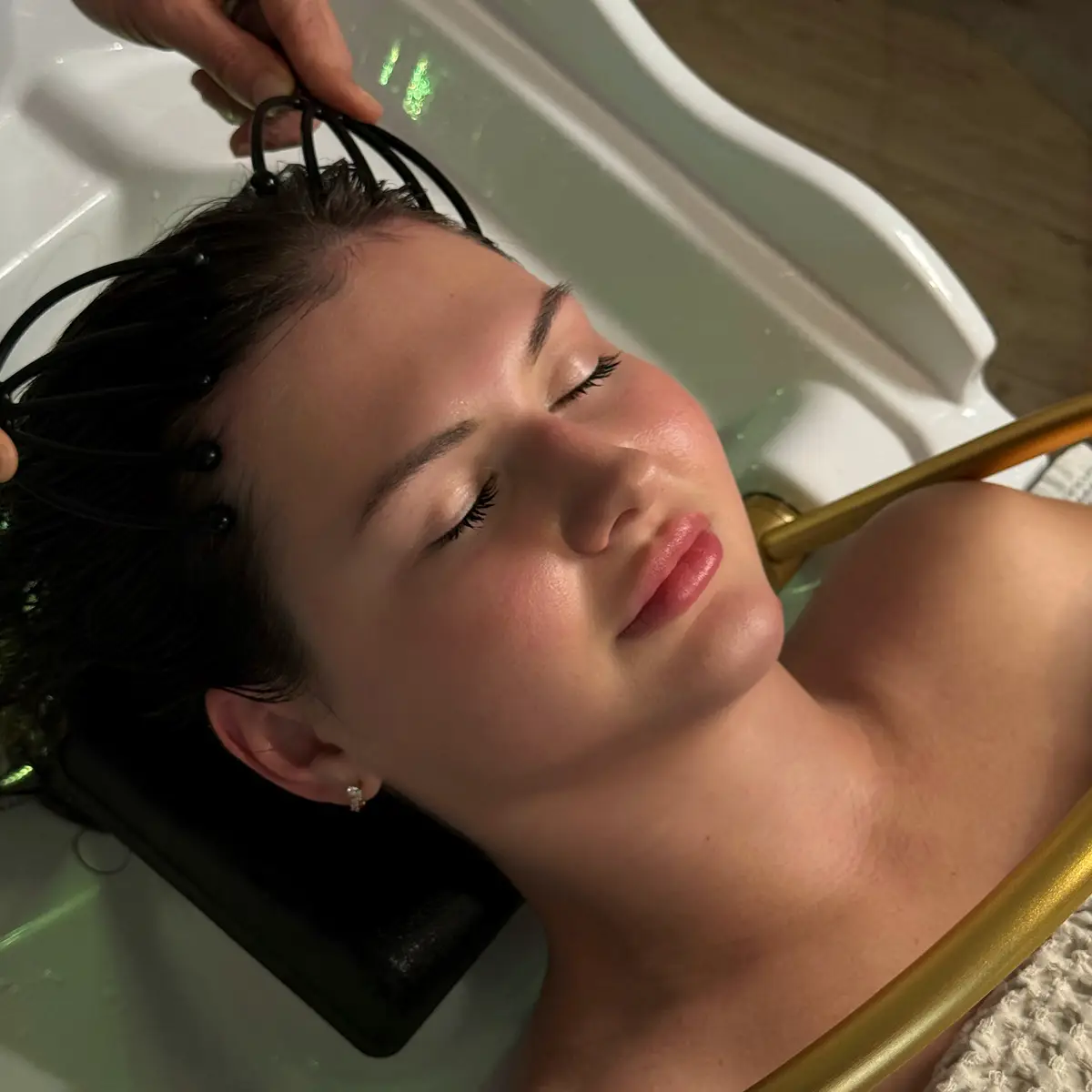 Dès votre arrivée, nous échangeons sur vos attentes et les besoins de votre cuir chevelu. Cette analyse me permet d'ajuster précisément le soin en fonction de votre profil et de l'état de votre fibre capillaire pour un résultat sur-mesure. - Massage du cuir chevelu, nuque et épaules